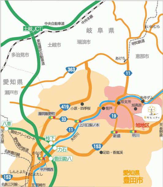 ・東海環状自動車道「豊田環八IC」より東へ約27km、